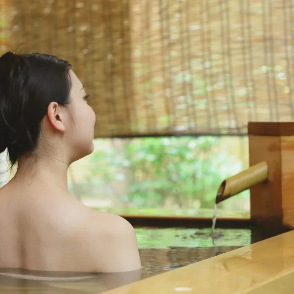窓から望む山里の風景と、あたたかな湯で過ごす、素朴で贅沢なくつろぎの時間。