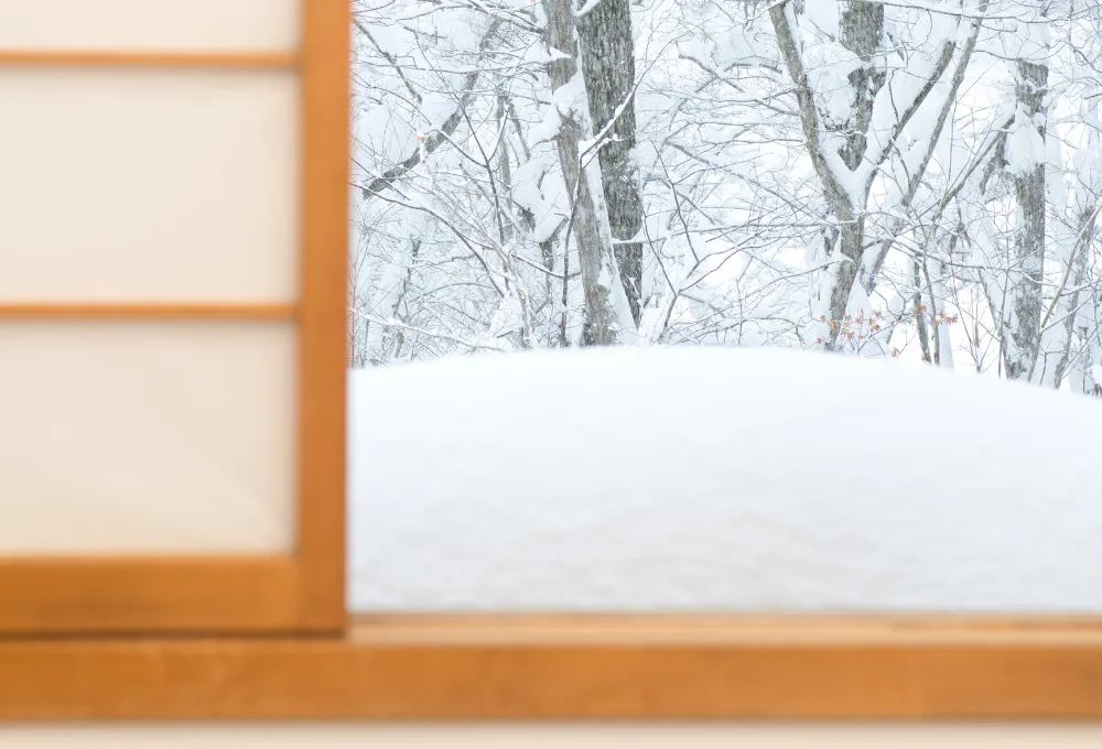 窓の外には真っ白な雪景色、室内には囲炉裏や暖炉の温もり。時間がゆるやかに流れ、都会では味わえない静寂と解放感に包まれます。