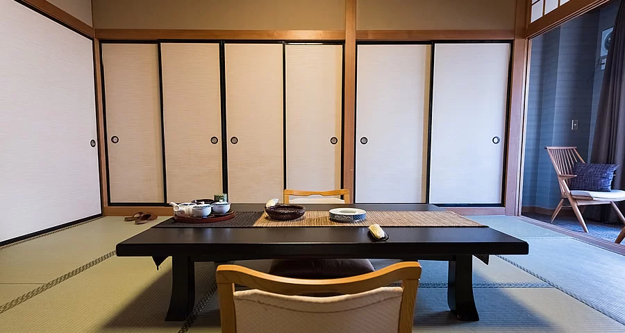 開放感たっぷりの趣ある空間で自然の息吹を感じながらいただく御膳は何とも形容しがたい素晴らしさがあります。日常の喧騒を忘れて気兼ねなくお過ごしください。古いものと新しいものが美しく調和した空間。和モダンのシックな造りの内装と、きれいに手入れされた坪庭がより一層リラックスムードを演出します。四季の自然美が美しい湯宿にはこころ癒される魅力が満載です。