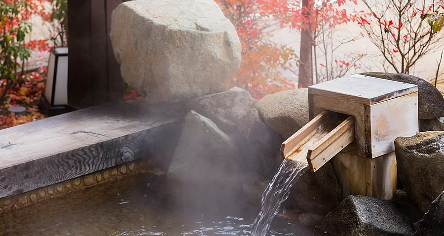 源泉かけ流しの露天風呂で心も体もリラックス。