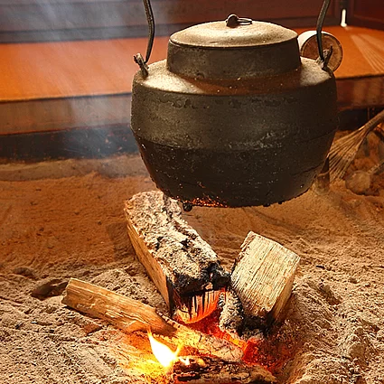 古いものと新しいものが美しく調和した空間。和モダンのシックな造りの内装と、きれいに手入れされた坪庭がより一層リラックスムードを演出します。四季の自然美が美しい湯宿にはこころ癒される魅力が満載です。開放感たっぷりの趣ある空間で自然の息吹を感じながらいただく御膳は何とも形容しがたい素晴らしさがあります。日常の喧騒を忘れて気兼ねなくお過ごしください。